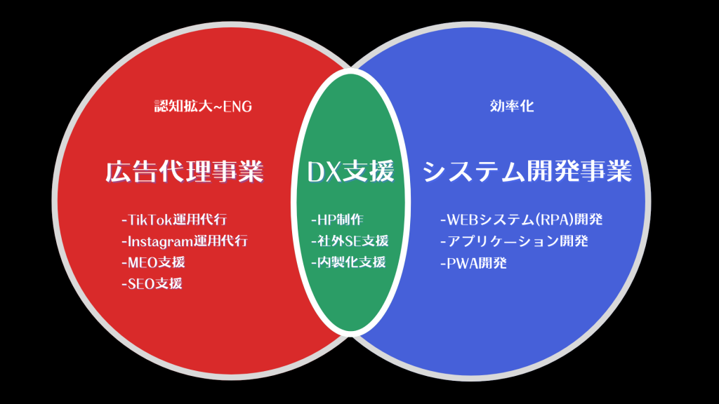 企業や医療機関のマーケティング支援に留まらず、システム/APP開発から導入保守まで一貫してDX化を支援いたします。